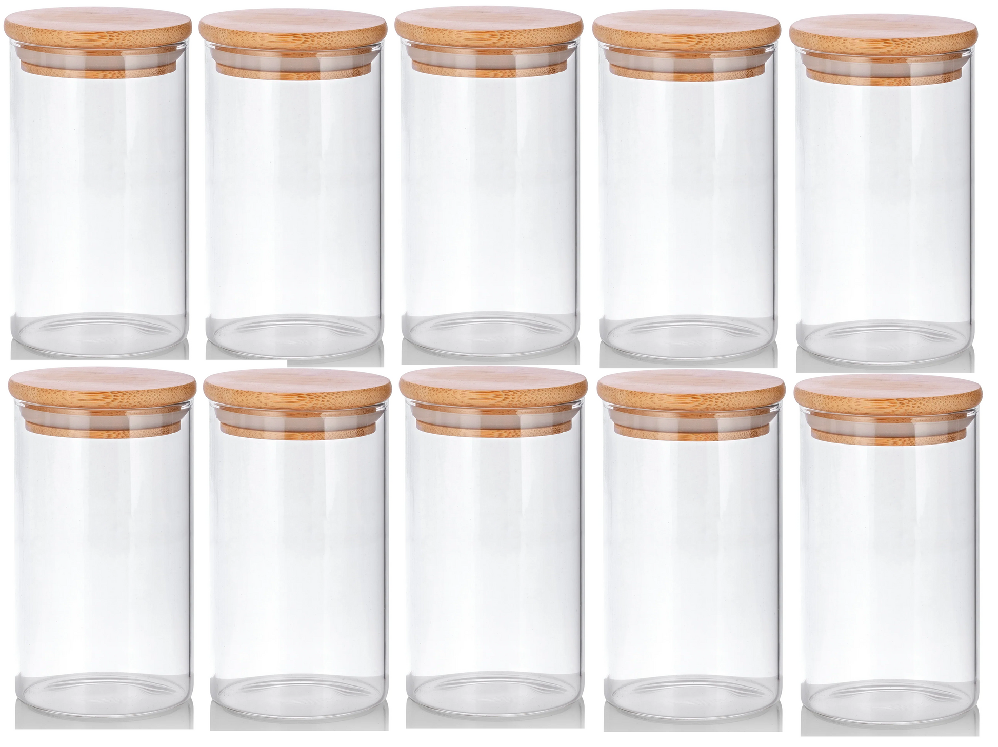 16 oz Borosilicate Clear Glass Storage Jar with Bamboo Lid (10 pack)