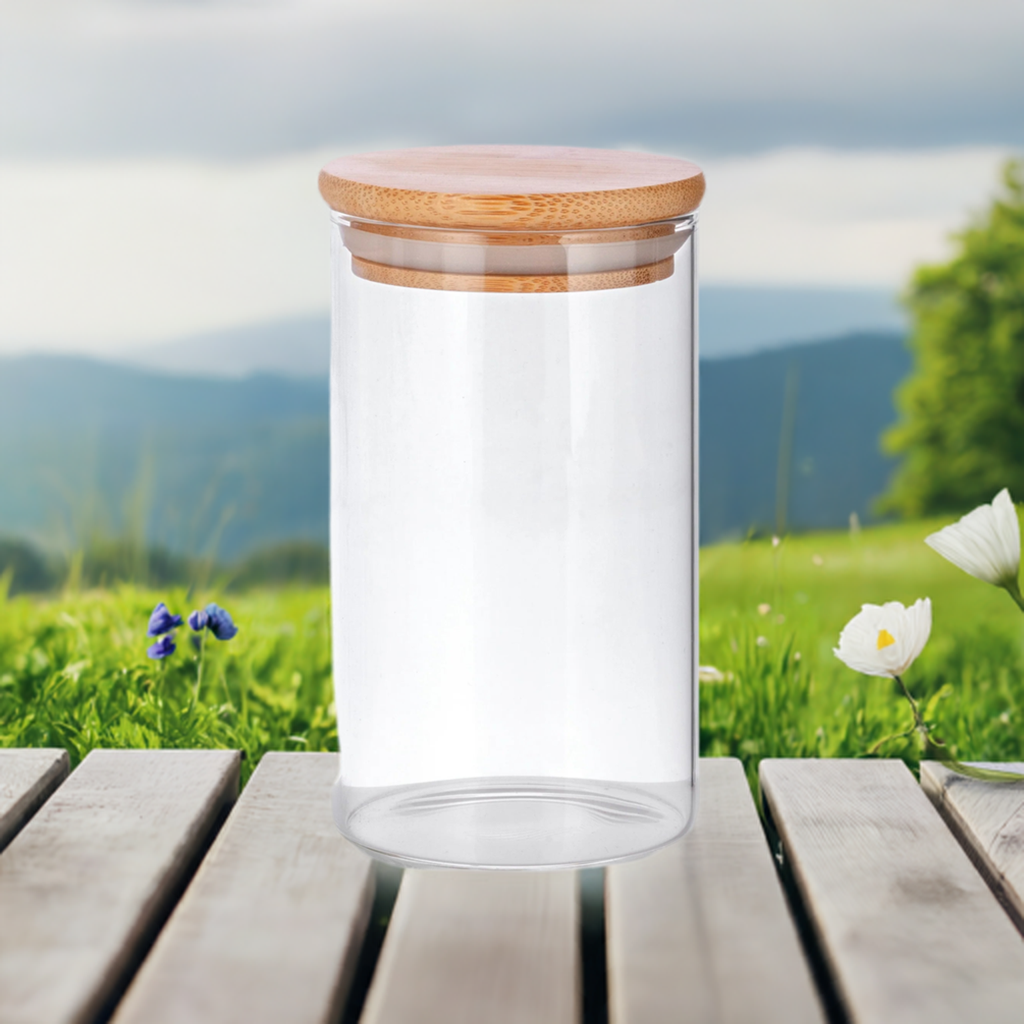 16 oz borosilicate clear glass tall jar with a Wooden Bamboo Silicone Lid